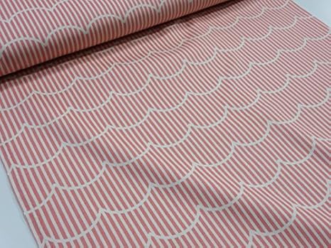 Amazon 北欧風ストライプ ウェーブ ピンク オックス生地 ぬの 生地 布地 コットン生地 入園 男の子 女の子 布 生地 通販
